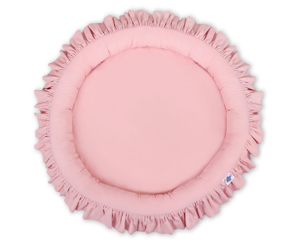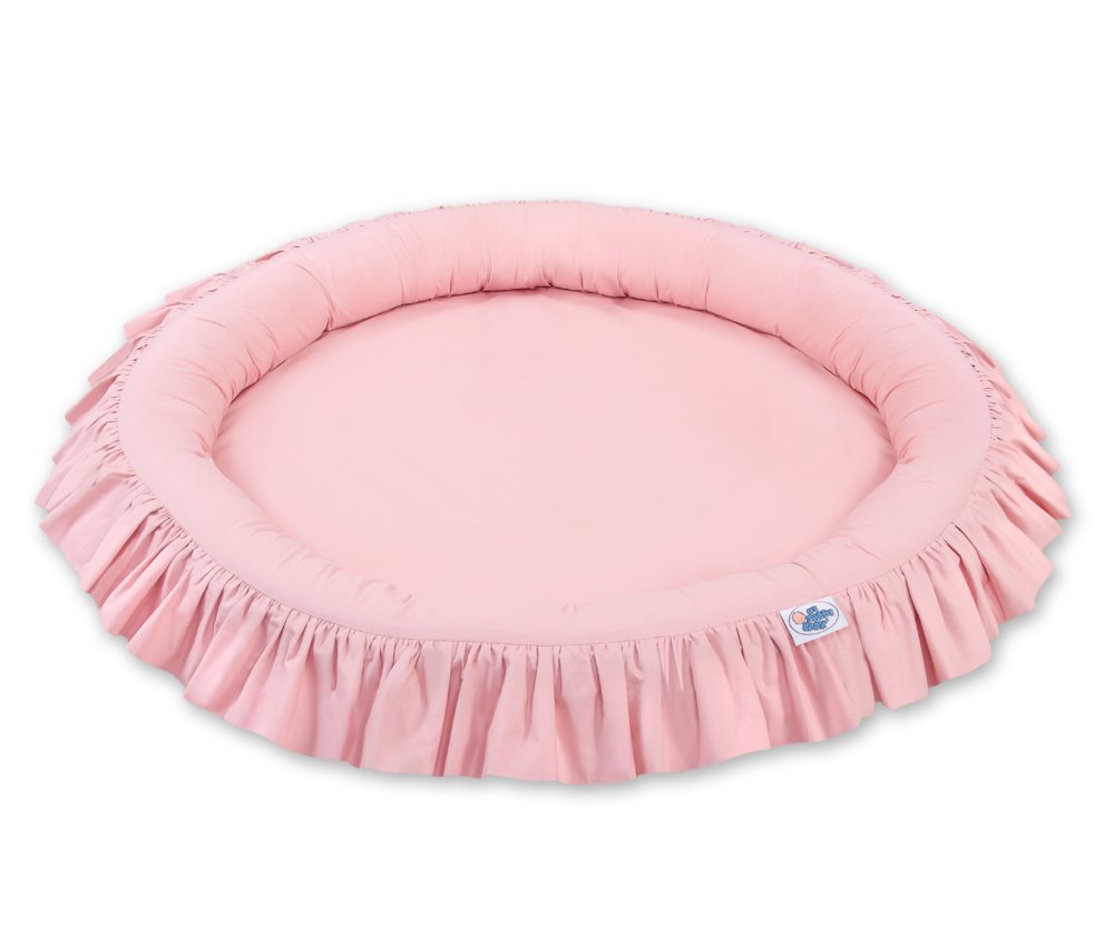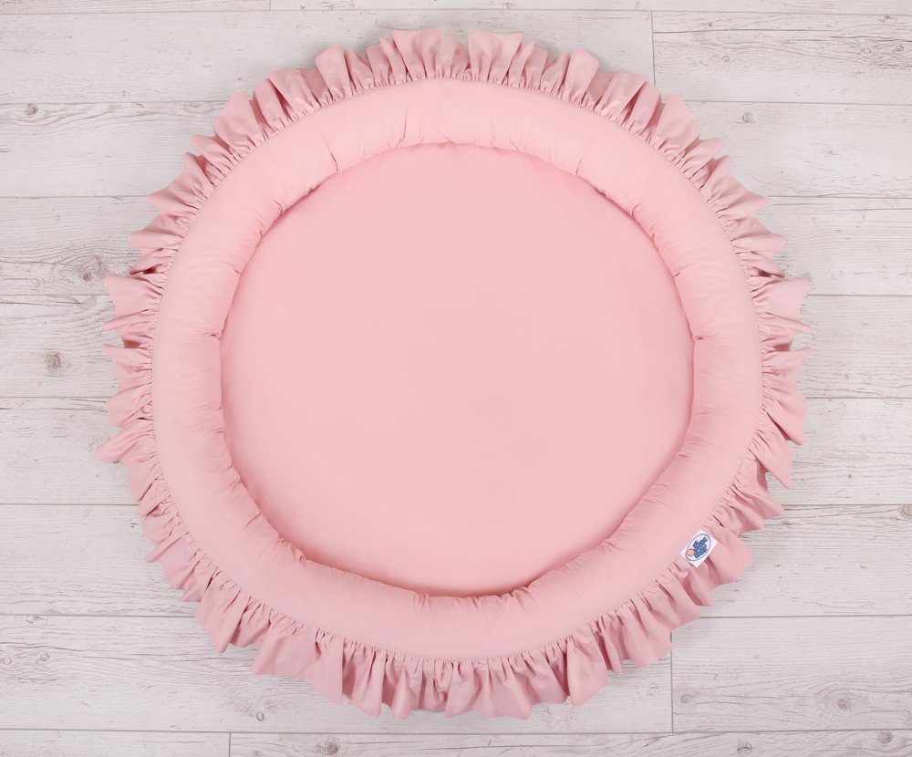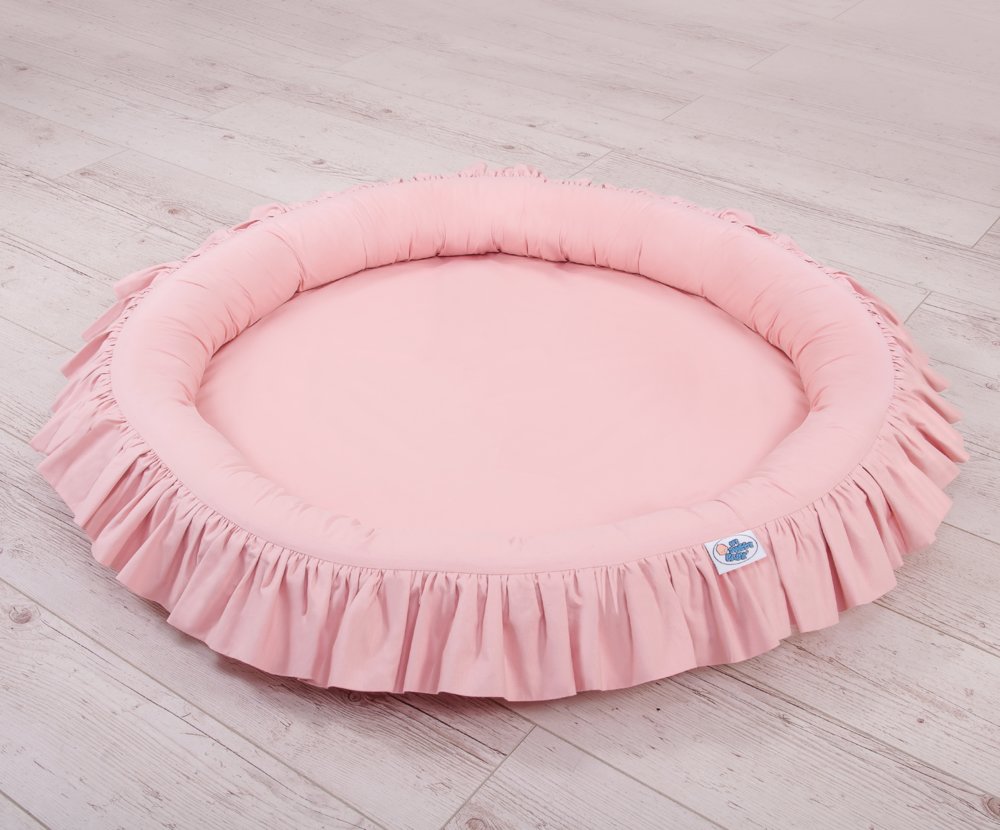 Okrúhle hniezdo s volánikom je súčasťou baldachýnu. Široké, okrúhle a mäkké steny zaistia bezpečnú zábavu pre každé bábätko. V kombinácii s baldachýnom vytvorí dokonalé, tiché miesto na hru či odpočinok. Hniezdo má mäkkú výplň, ktorá dokonale izoluje od tvrdej a studenej podlahy. Vyrobená zo 100% bavlny s certifikátom Okotex. Je snímateľná, čo uľahčuje pranie samotného poťahu. Vložka podložky je vyrobená z moderného, antialergického, certifikovaného materiálu. Dá sa farebne kombinovať aj s vankúšikmi, mantinelmi či dekoráciami z našej širokej ponuky.