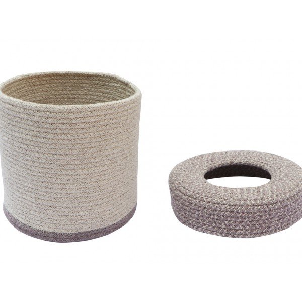 Košík je vyrobený z recyklovanej priadze. Košík má odnímateľné veko s otvorok v strede.