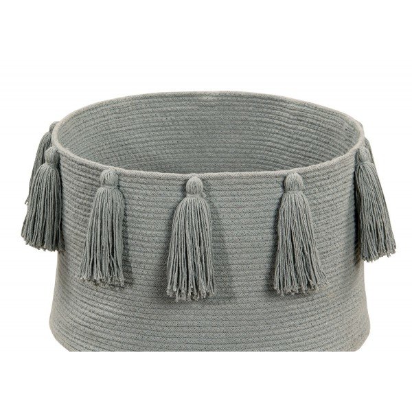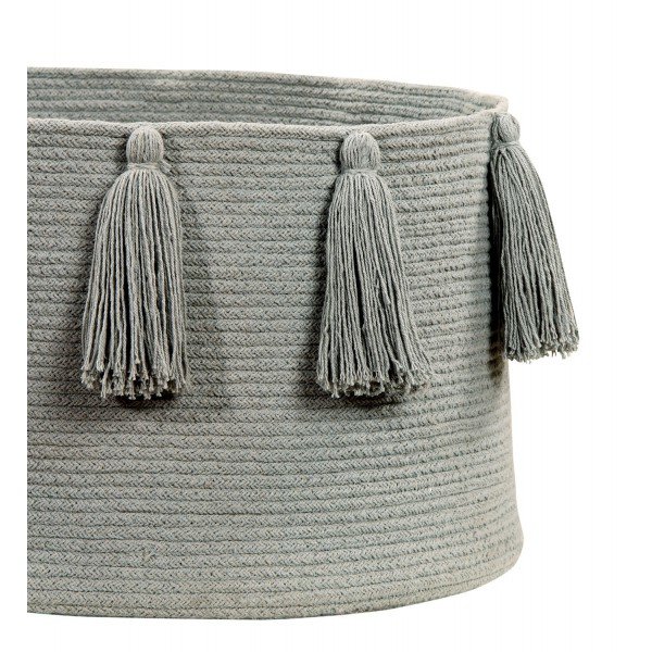 Košík je vyrobený z pletených bavlnených šnúrok. Po okrajoch je zdobený strapcami.