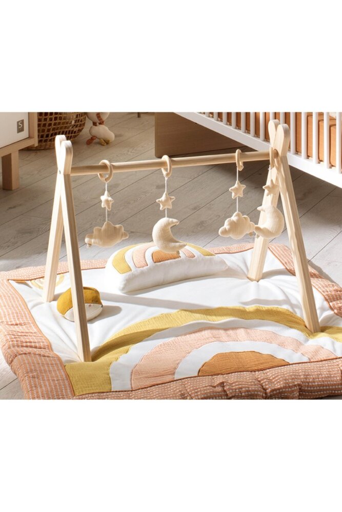 Vďaka jednoduchému a bezpečnému dizajnu poskytuje priestor na hru aj oddych. Zavesené hračky motivujú dieťa k naťahovaniu rúk, čím sa prirodzene rozvíja jeho koordinácia a motorické schopnosti.
