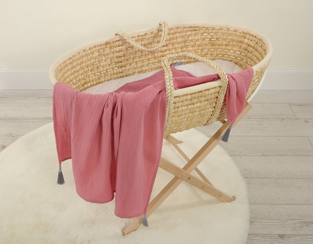 Detská mušelínová plienka so strapcami - Vintage ružová