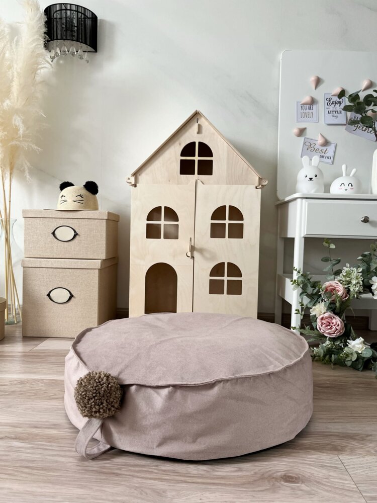 Detský okrúhly puf na sedenie - Béžový