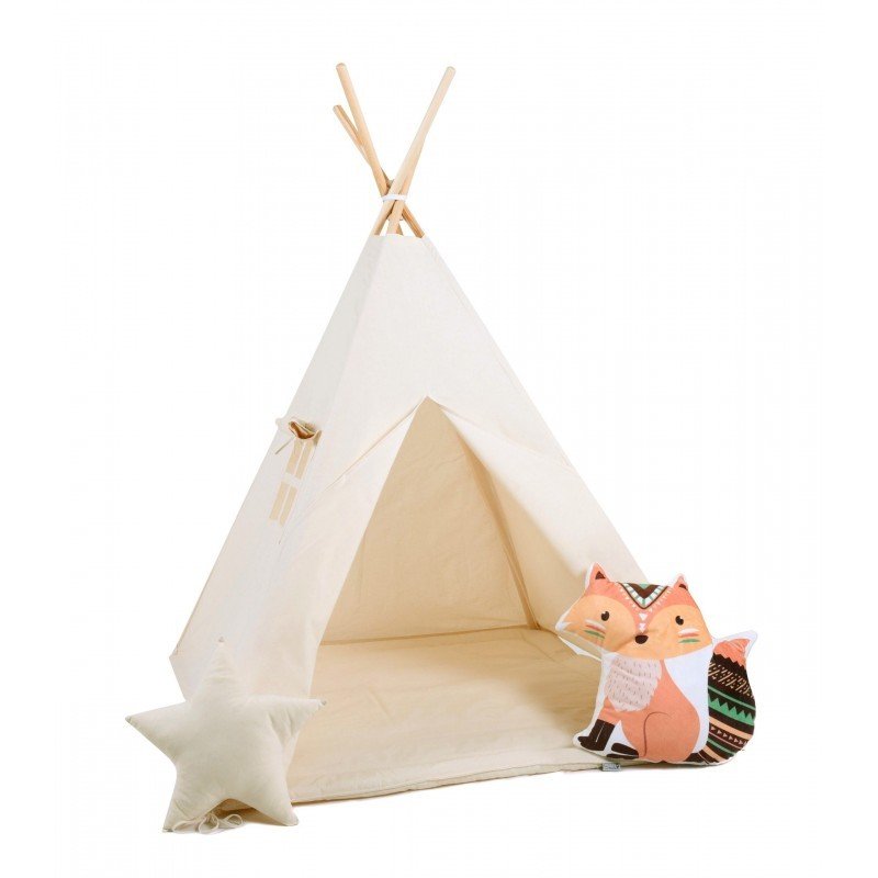 Detský teepee stan Milky land + podložka, dekoračné vankúšiky fox