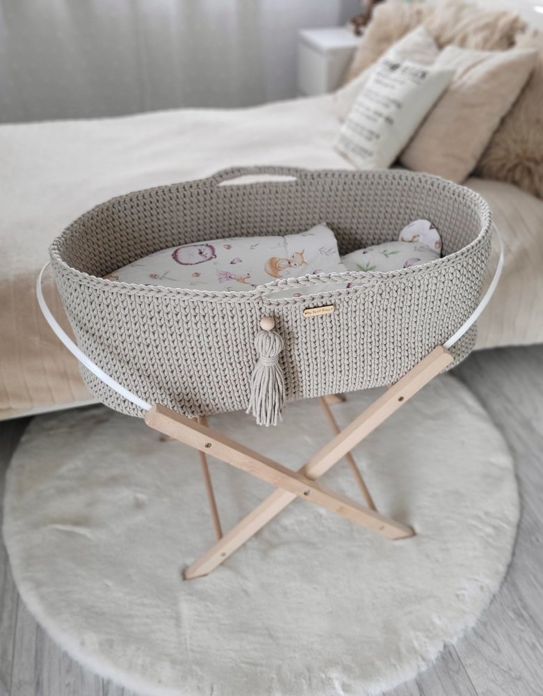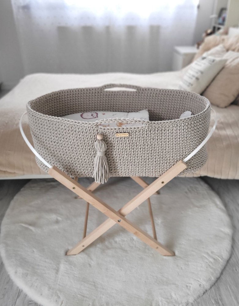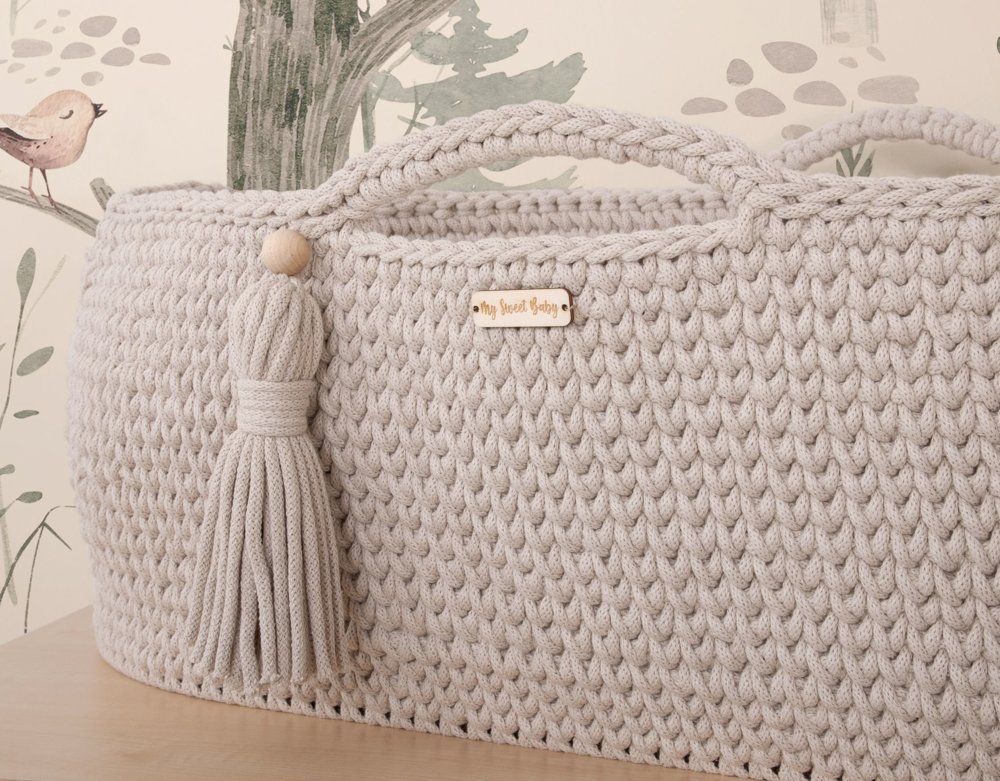 Háčkovaný mojžišov kôš pre bábätko - Béžový