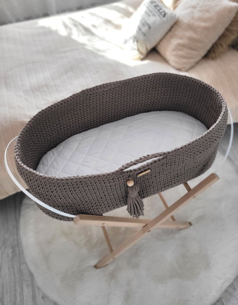 Háčkovaný mojžišov kôš pre bábätko - Mocca