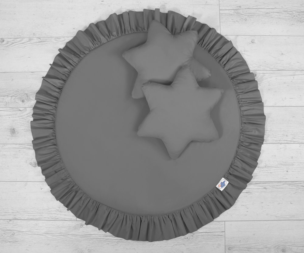 Okrúhla podložka s volánikom. Funkčná a praktická. Perfektne využitá ako koberček, hracia podložka alebo podložka k baldachýnu. Od prvých dní môže slúžiť ako podložka na ležanie na brušku. Má mäkkú výplň, ktorá dokonale izoluje od tvrdej a studenej podlahy. Okrúhla podložka je tiež skvelým miestom na hru a odpočinok. Vyrobená zo 100% bavlny s certifikátom Okotex. Podložka je snímateľná, čo uľahčuje pranie samotného poťahu podložky. Vnútro podložky je vyrobené z moderného, antialergického, certifikovaného materiálu.