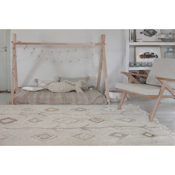 Štýlový koberec Lorena Canals Kaarol Earth krásne doplní detskú izbu alebo inú časť interiéru. Oceníte aj jeho kvalitu a funkčnosť - vďaka možnosti jeho prania v bežnej práčke je jednoduchý na údržbu.