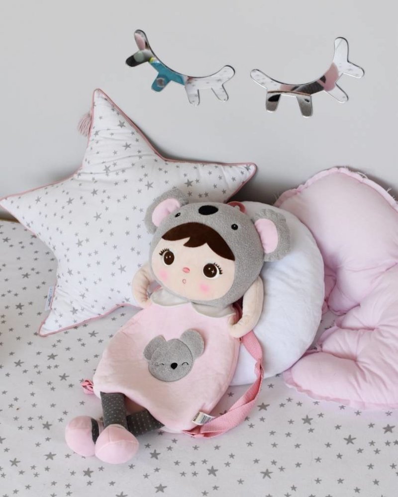 Tento batoh má štýlový dizajn, ktorý zahŕňa plyšovú hračku Metoo vo forme koaly. Batoh je vyrobený z kvalitného materiálu, ktorý je odolný a trvanlivý. Jeho rozmery umožňujú pohodlné uloženie osobných vecí, ako sú knihy a iné drobnosti.