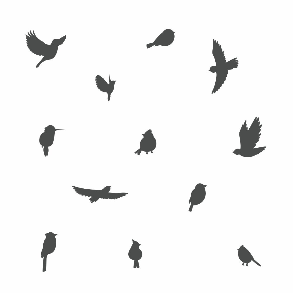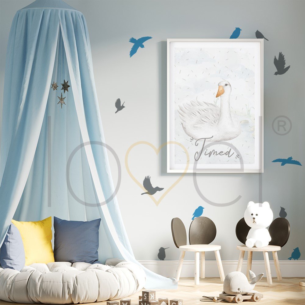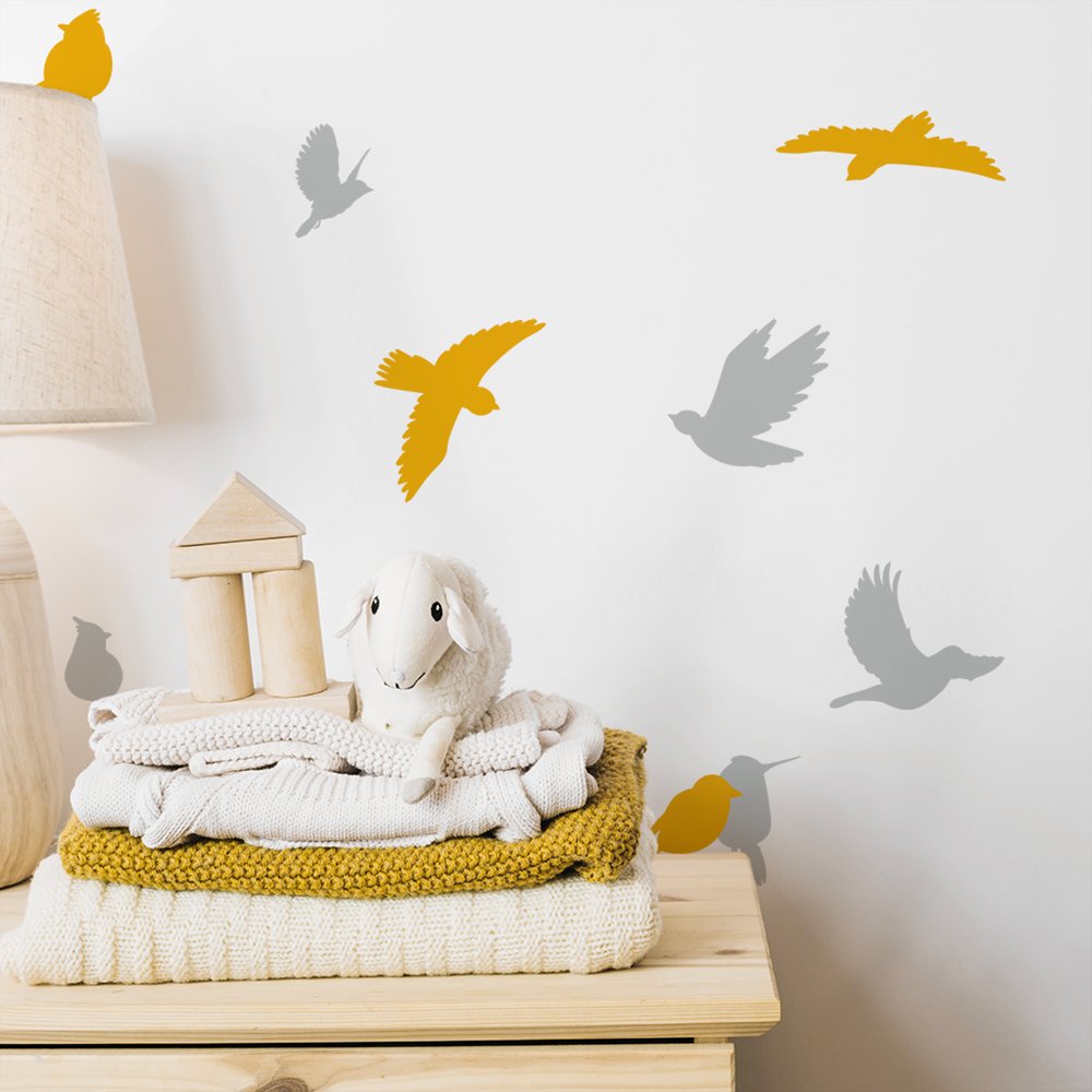 Nálepka je vytlačená na matnej fólií. Nálepku tvoria vtáčiky. Môže zdobiť nie len steny, ale aj nábytok a okná a vytvoriť tak jedinečný dizajn detskej izbičky.