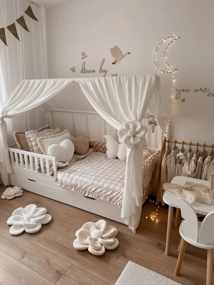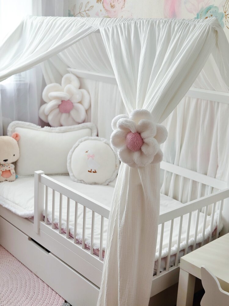 Mušelínový baldachýn na domčekovú posteľ zmení posteľ na útulny úkryt a jemne stlm&iac ...