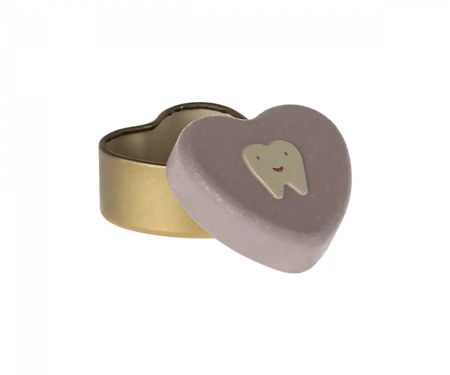 Krásna plechová nádoba v tvare srdiečka, kde si Vaša najmenšia ratolesť môže uložiť svoje prvé vypadnuté mliečne zúbky.