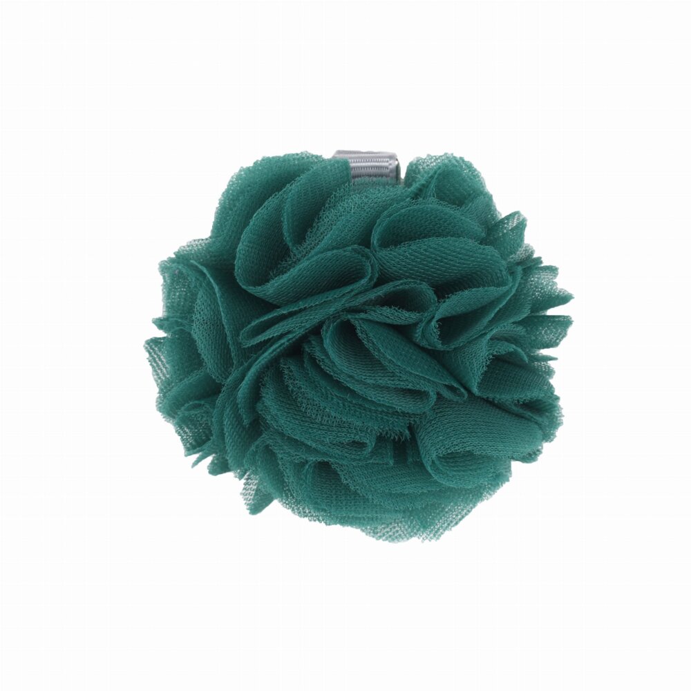 Pom pom brmbolček je vyrobený z tylovej látky a je pripevnený na kovovú sponku.