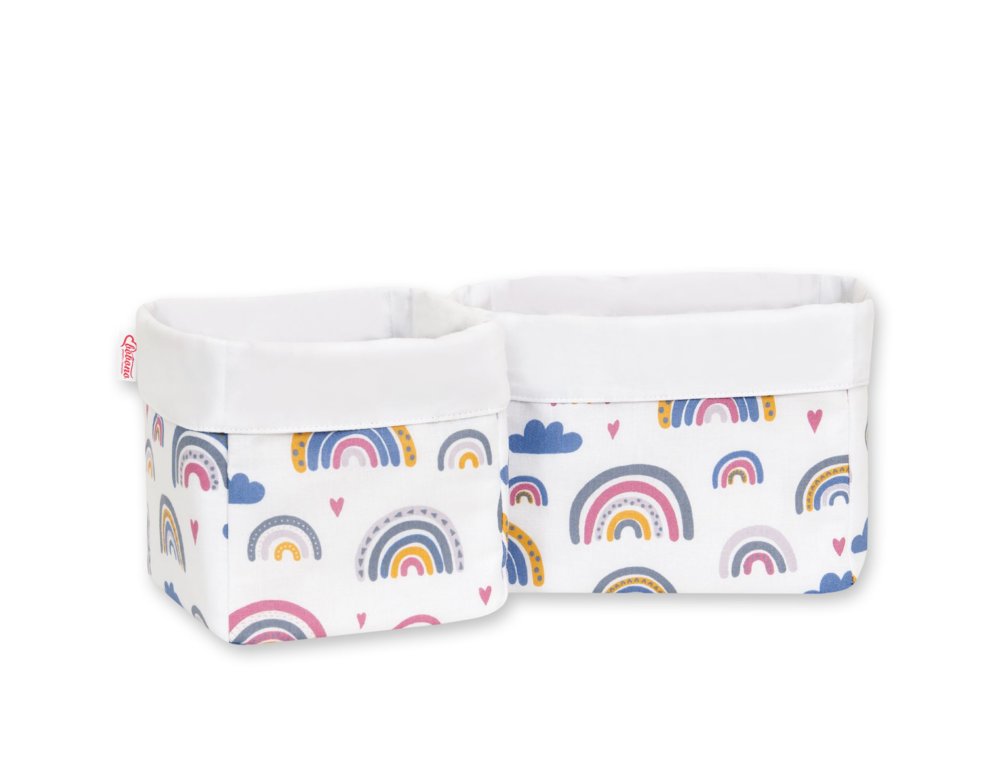 Sada 2 košíkov na detské doplnky. Multifunkčné koše na doplnky ( plienky, kozmetiku a iné drobnosti ). Perfektné riešenie na udržanie poriadku v detskej izbe, ideálne do kútika starostlivosti o bábätko alebo na menšie hračky pre vaše dieťatko.