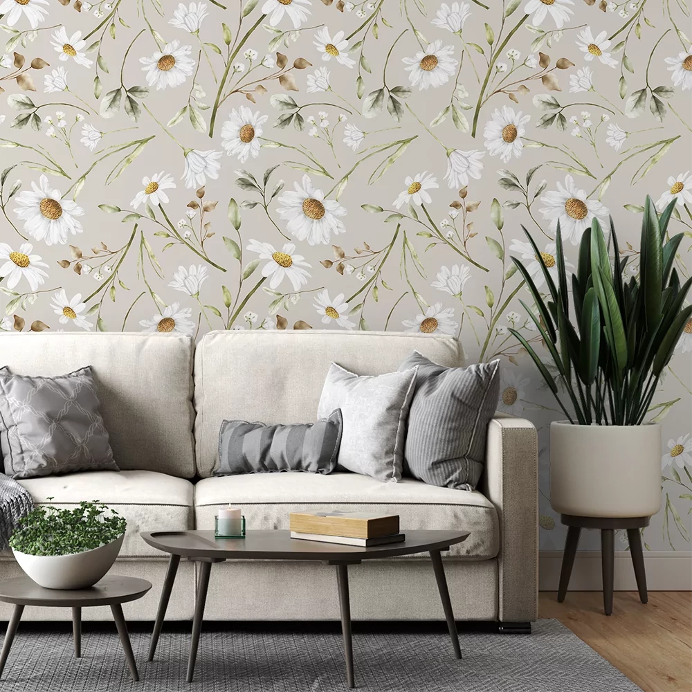 Pozadie tapety má jemný, svetlý odtieň čo vytvára dojem pokoja a harmónie. Táto tapeta prináša do miestnosti pocit prírodného kľudu a pohody. Je to ideálna voľba pre tých, ktorí hľadajú spôsob, ako vniesť do svojho domova prírodný dotyk a jemnú eleganciu.