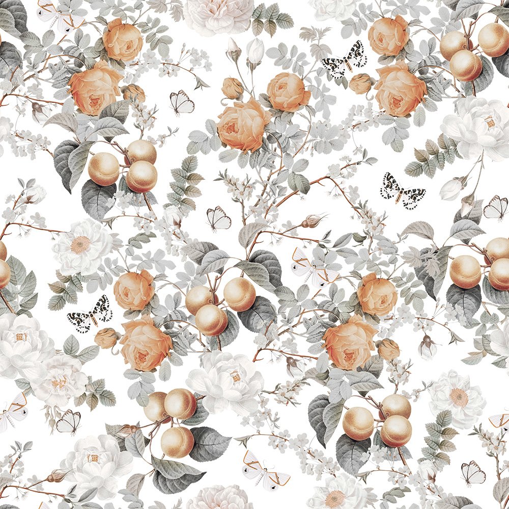 Nádherná tapeta s motívom kvetov a broskýň bude vyzerať skvelo v takmer každej miestnosti. Unikátny vz ...